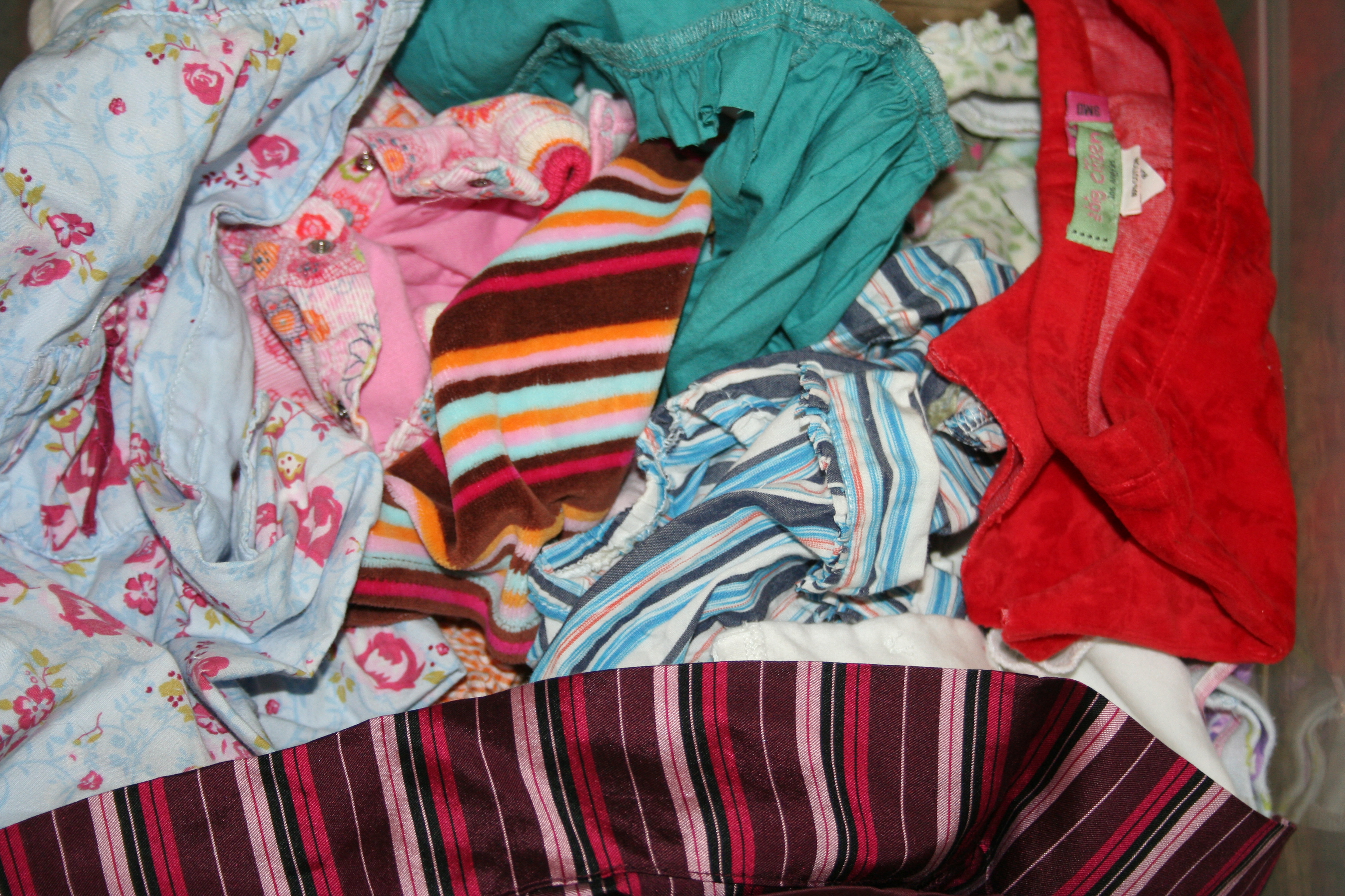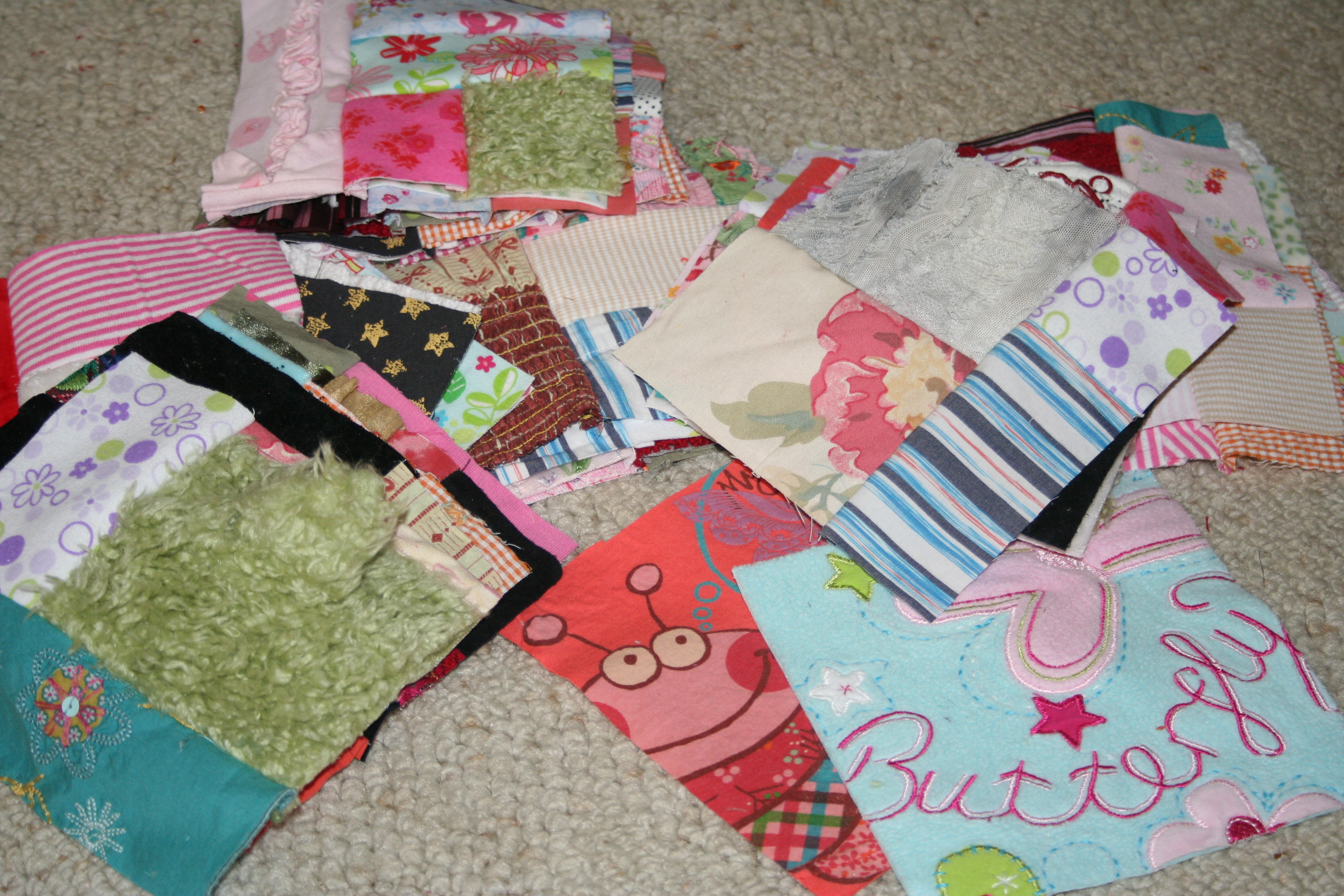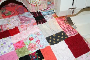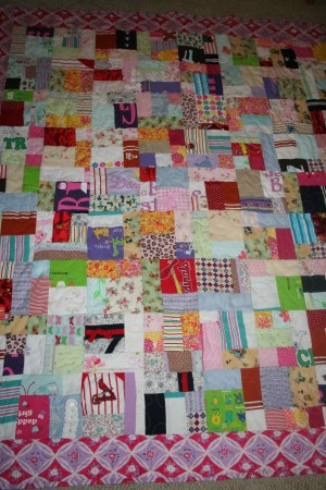 Many quilts that I have done for clients begin their life as clothes. They cloth children and adults, get put through storage, then come to be in plastic tubs to cut apart and begin the next stage of their life as a quilt. The most recent set was for a customer with 2 girls. She wanted small quilts out of their baby clothes to help preserve the memories but not take up a lot of storage room.