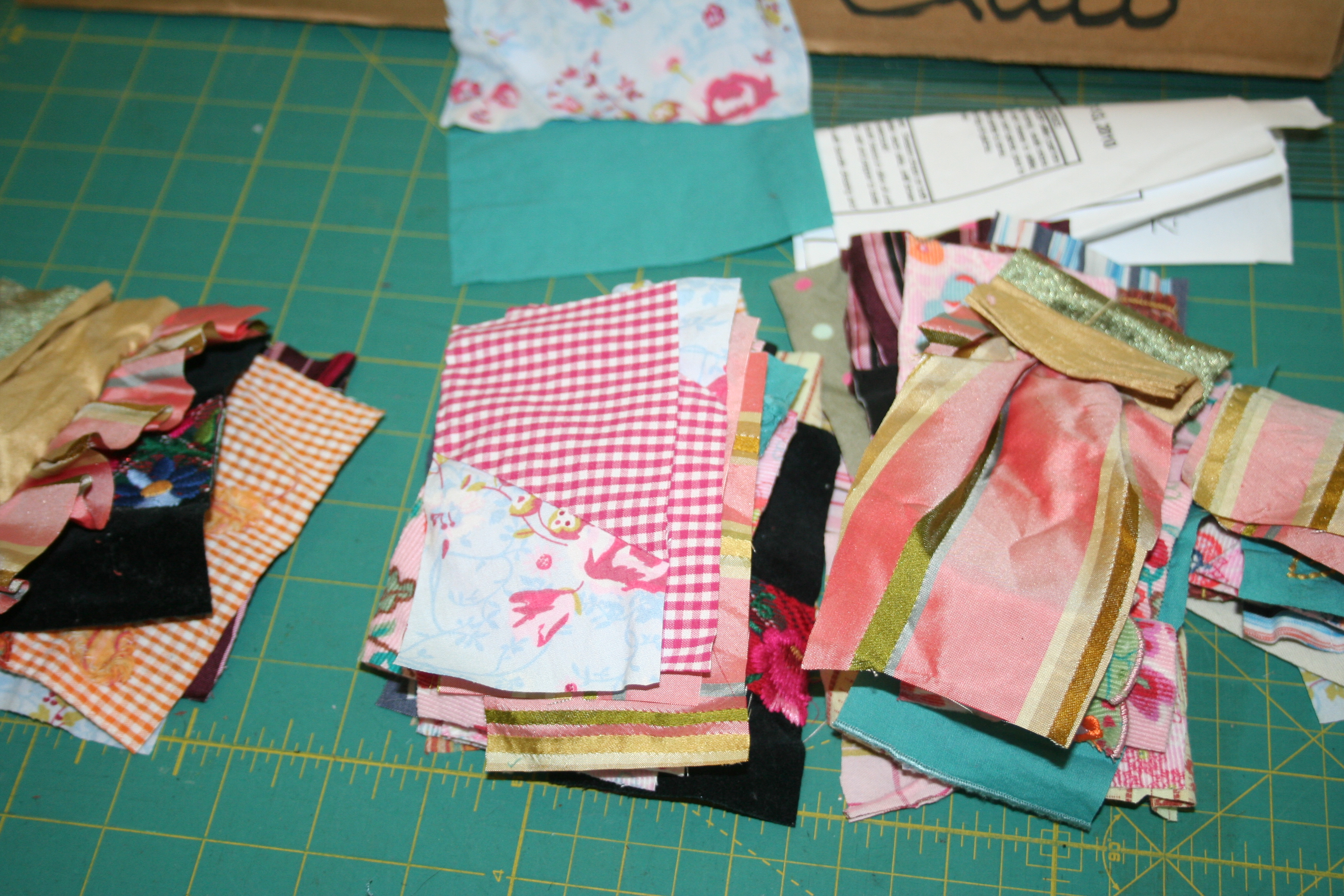 They begin as clothes and get cut apart. I look for the special parts of the garments and do my best to include those. This might be cute buttons, embroidery or ruffles. The knits are interfaced then with a fusible stabilizer so they don’t stretch.