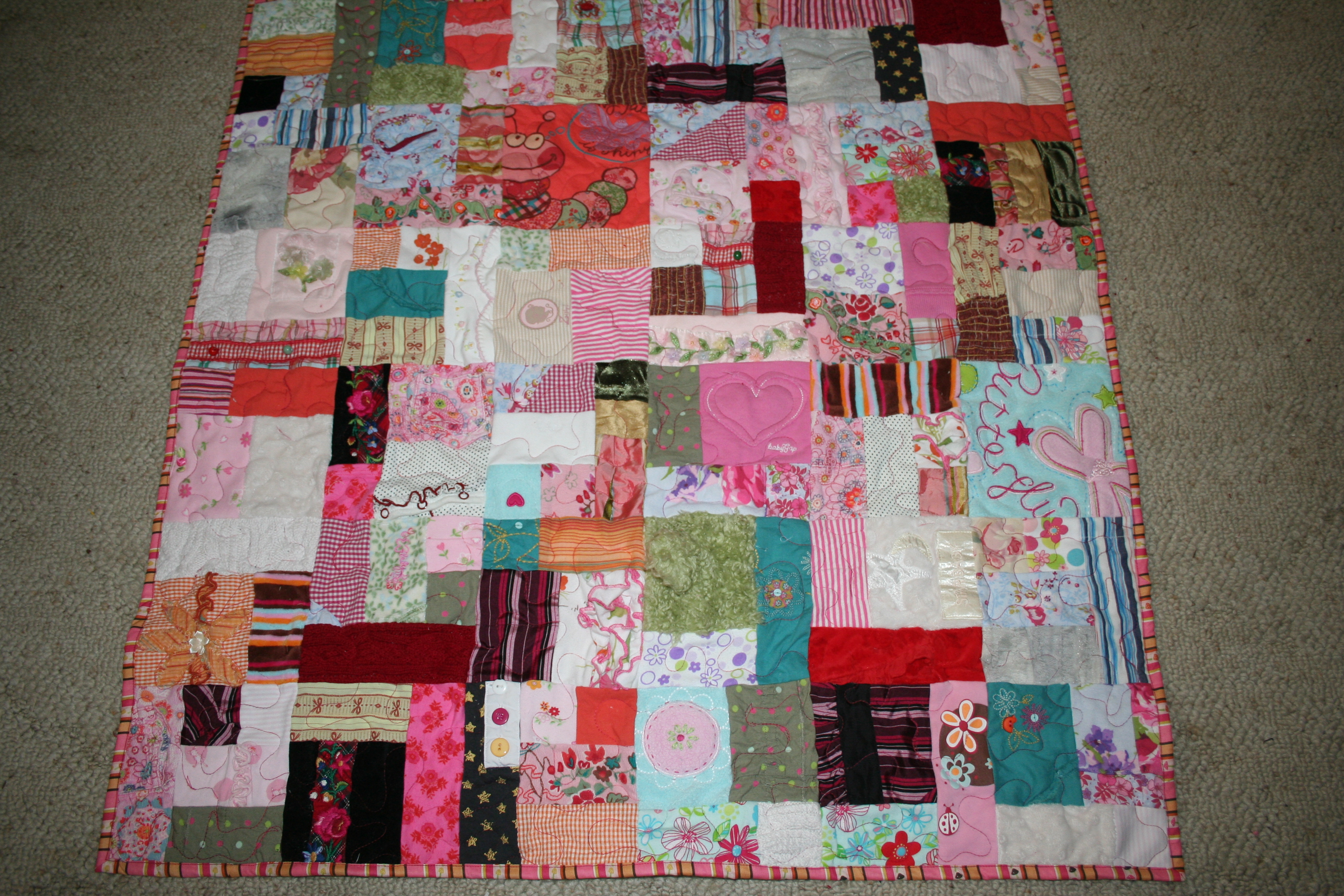 This quilt was for a little girl as you can guess from the pinks.