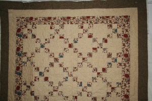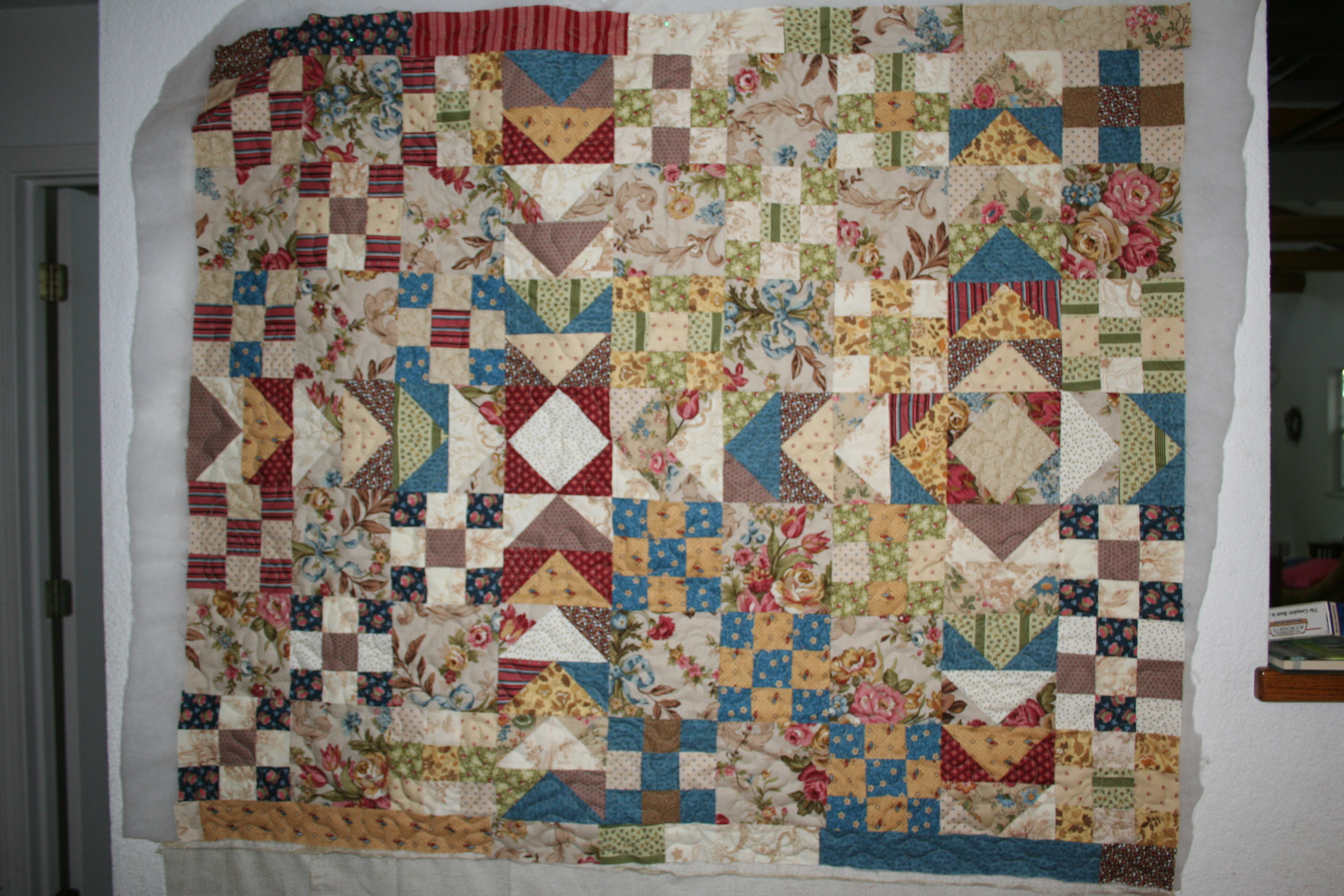 I assisted my client to pick out the fabric for this quilt. It is quilted with rounded 8 pointed stars, a meander between them, and a ladder in the out side borders.