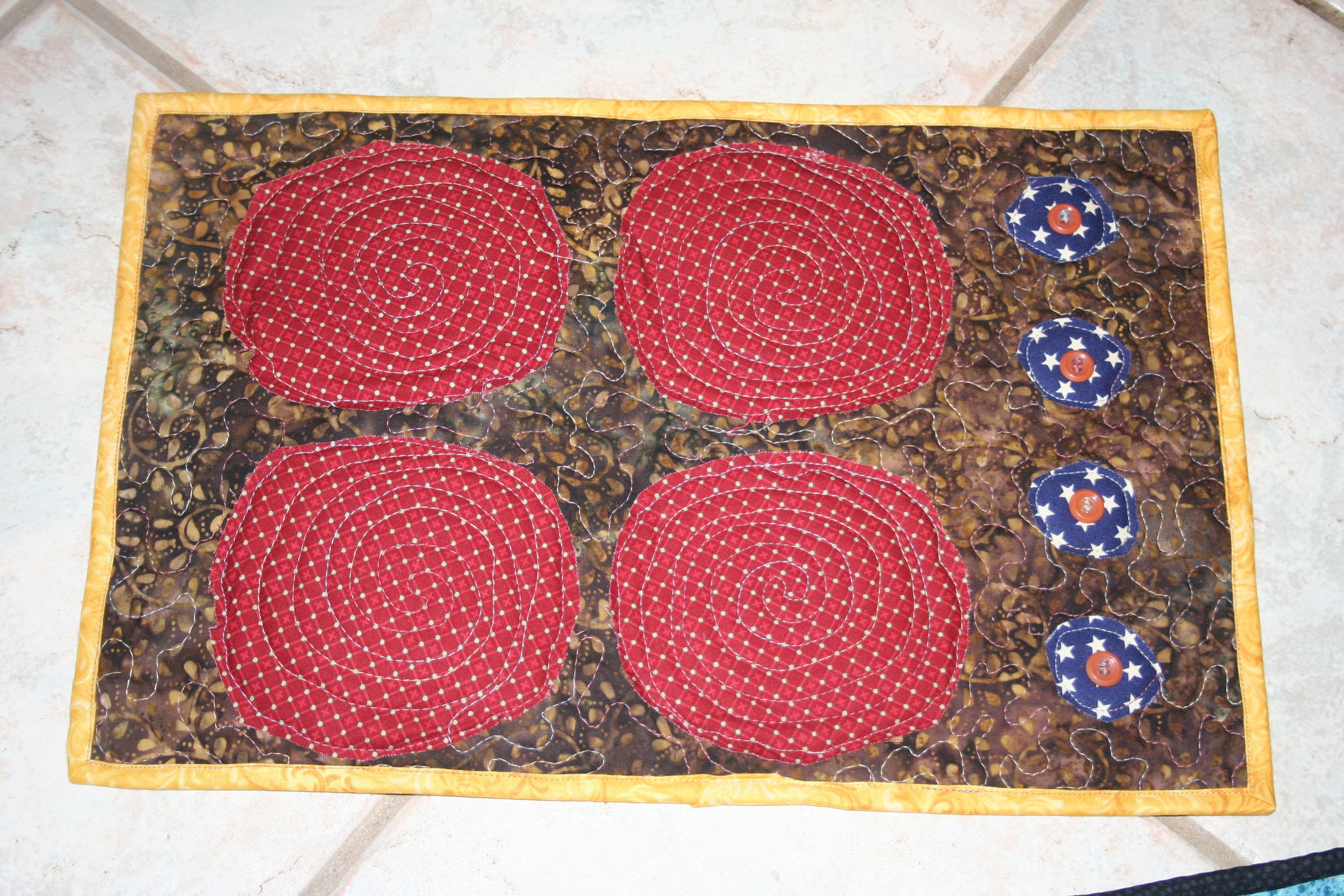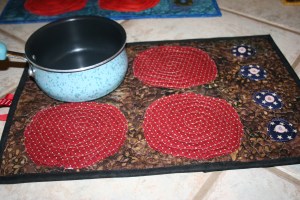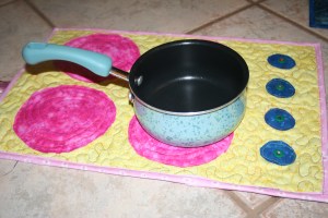 In it there was a tutorial from Joyful Abode on how to make a Fabric Stove. I thought I can do that and I have enough scraps to do so with out having to go to the store. This happened on Saturday, I had a wedding to go to in a couple hours and about 12 quilts sitting in my garage awaiting their turn, and I start rummaging though my stash to find fabrics for fabric stoves.