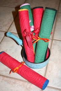 They are portable….roll them up, tie the ribbon and off you go…to Grandma’s kitchen.