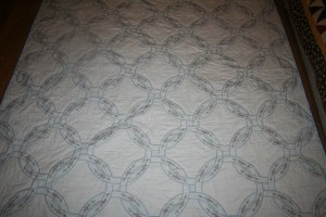 One more quilt is done, 9.5 more to finish this month…then I need lots more to pay for that beauty of a machine. I won’t ever forget what the Bernina has done for me. Thanks mom for the gift that she was, she lasted a long time and sewed many miles for me. I think she will be my traveling buddy. 🙂