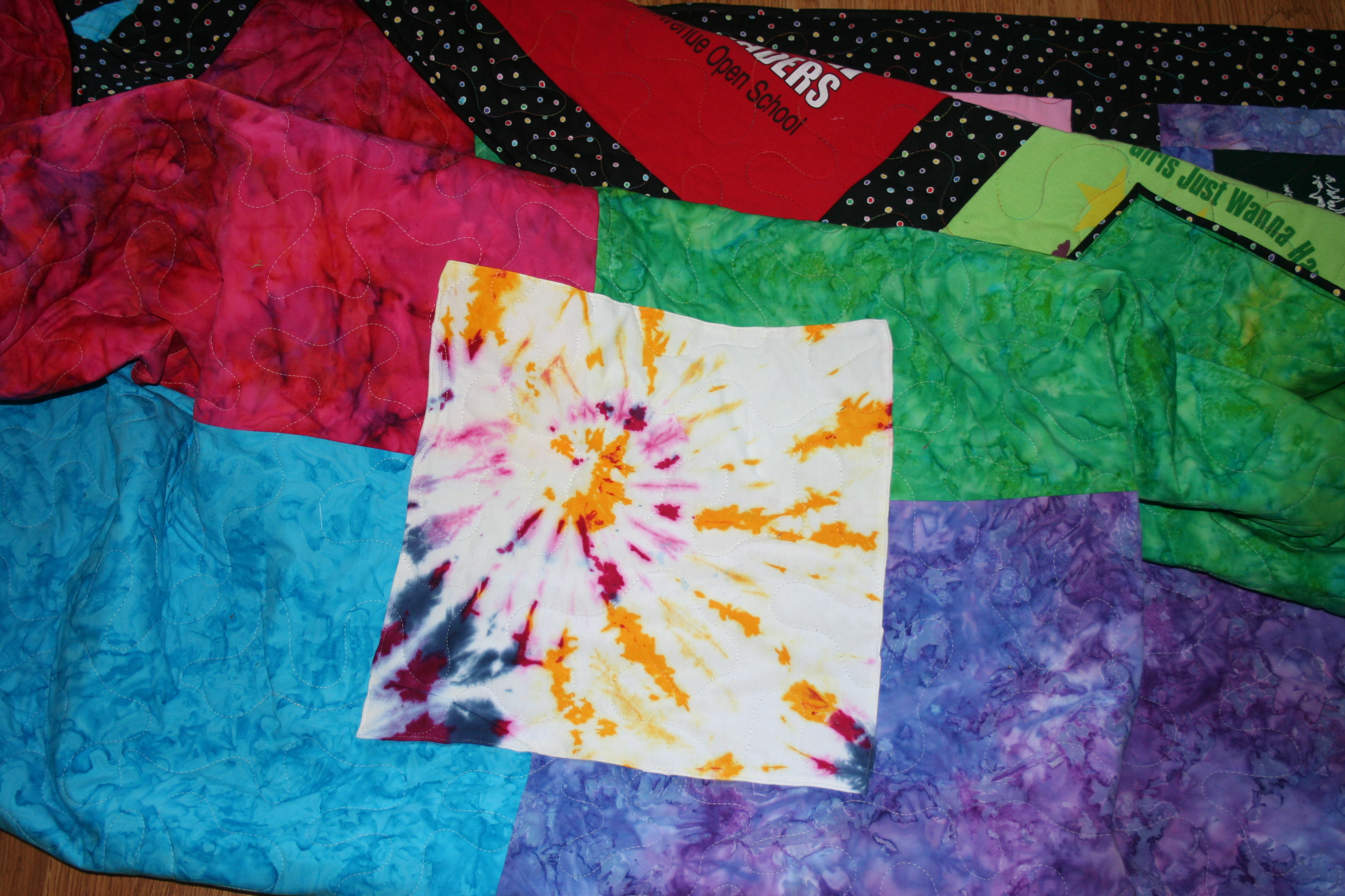 I ran out of room on the front so I added the tie-dye shirt on the back.