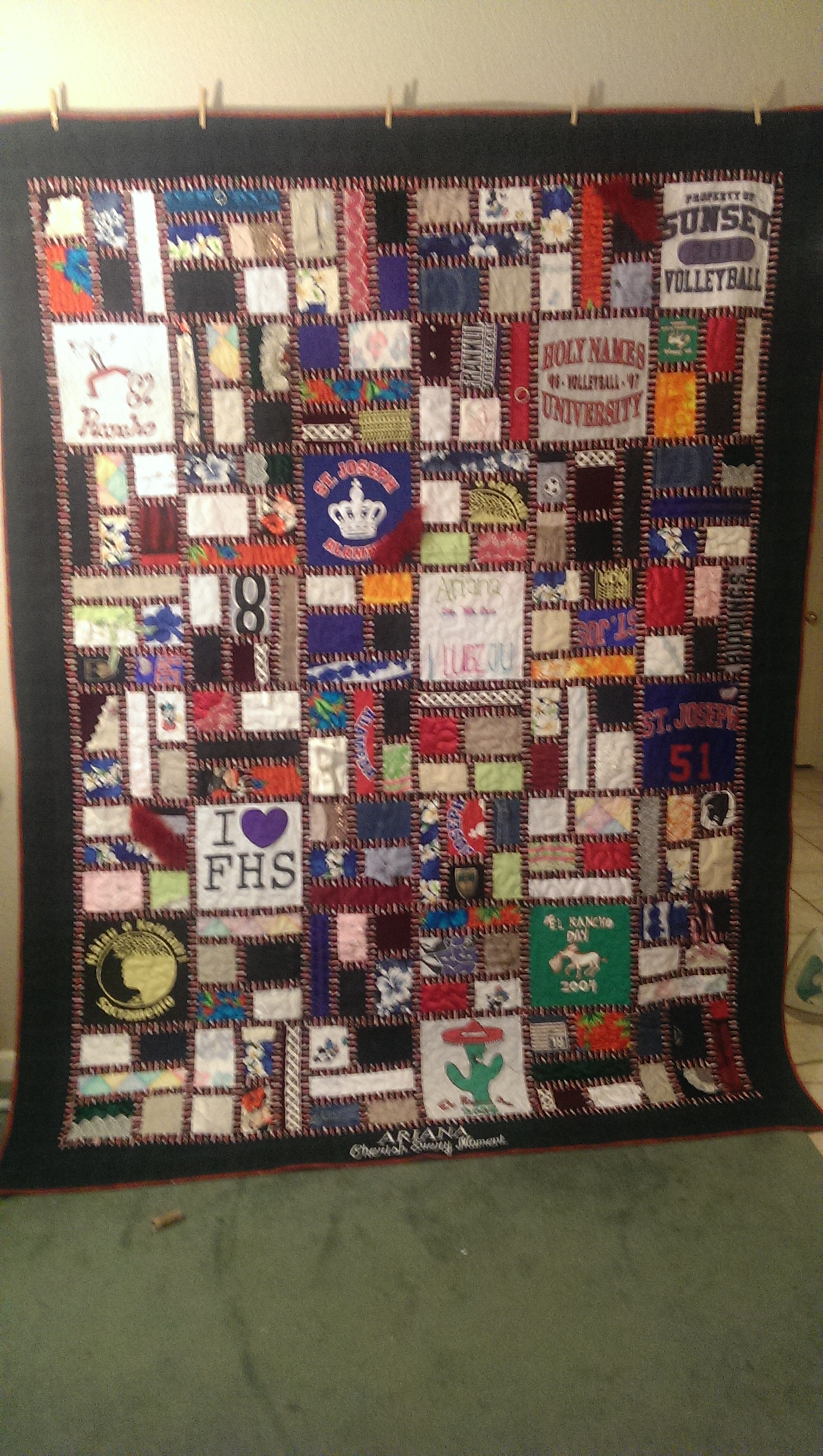 Memory quilt for an 18 year birthday from all the special clothes.