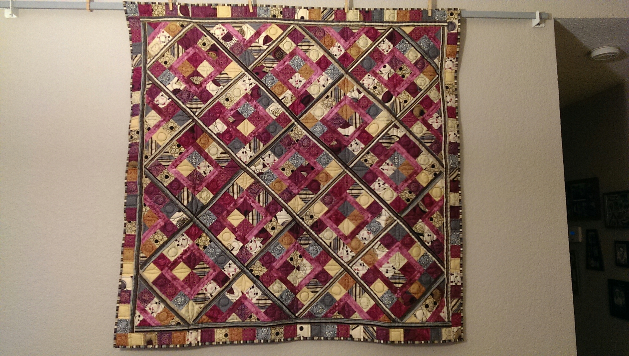 Catch up that is…I haven’t been out of action, I have been busy with quilting, my real job, adopting a dog, getting fit…and putting of updates. Recently it came to me that I should see if there was a phone app for this blog thing…take a couple pictures, pull together some words and post. Might be easier and more likely to be done if I can do it all from my phone instead of taking pictures with the camera, uploading to the computer, then WordPress, then writing…hopefully by taking out a step or two, I can be more consistent.