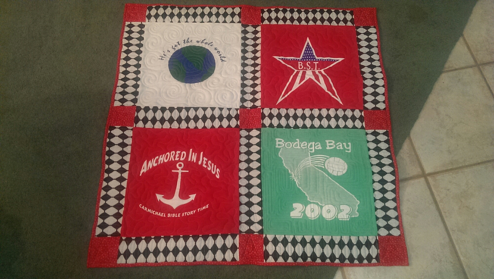 Now I have a sample, not only for a tshirt quilt, but for quilting styles as each block has a different pattern.