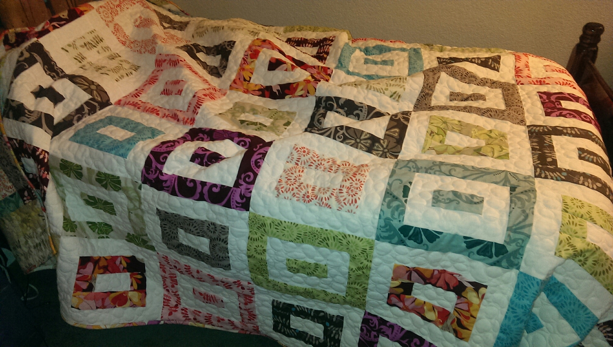 I had the quilting done for a couple years and had never taken the time to bind. (Binding is my least favorite part of the quilting process)