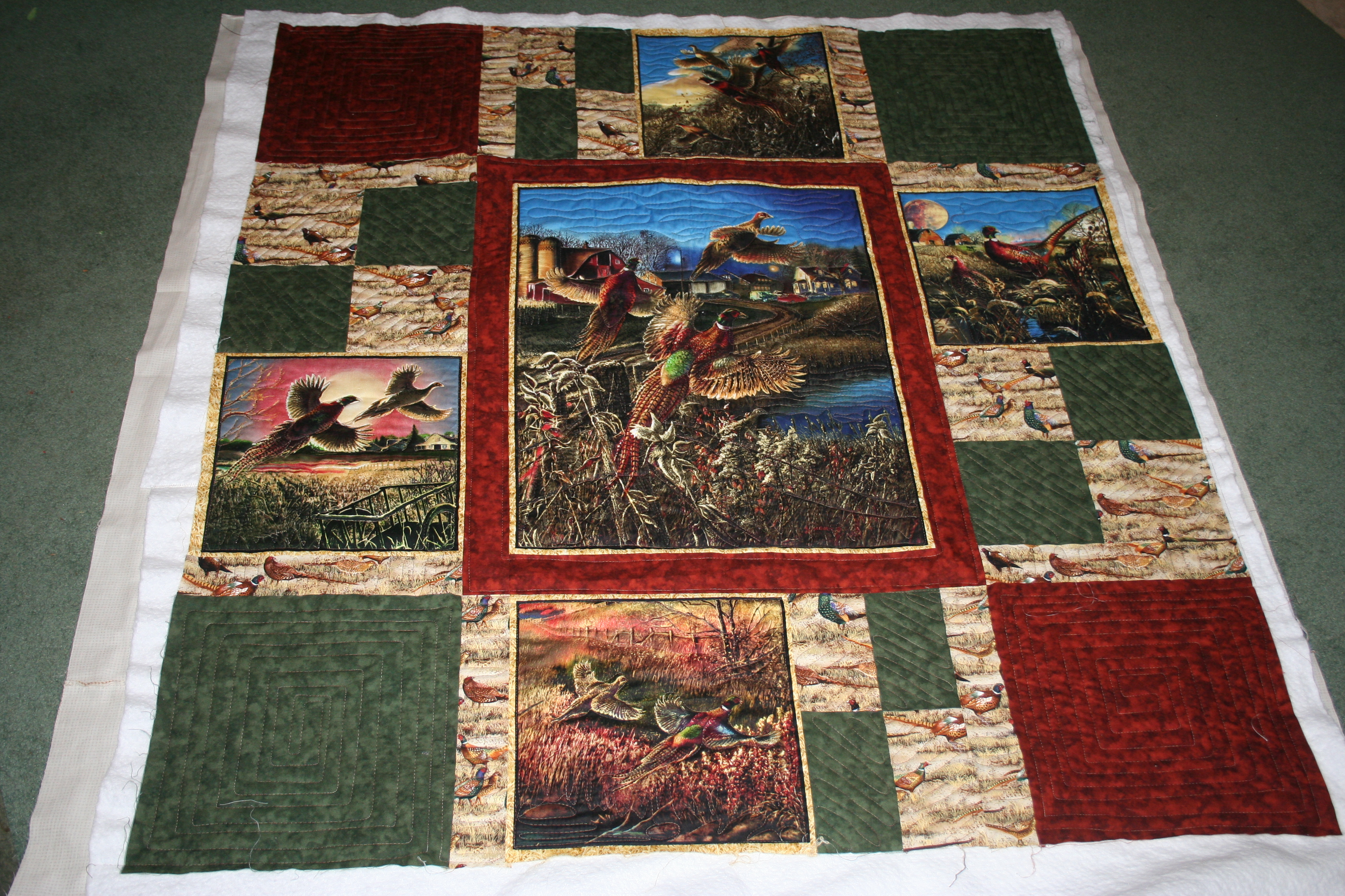 Pheasants and hunting quilt